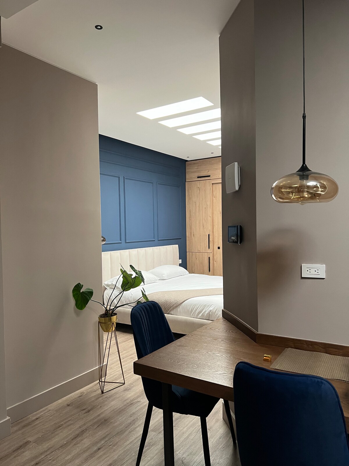 La deg fange av roen i den sjarmerende leiligheten vår, hvor soverommet har utsikt mot en rolig, solbelyst gate. Leiligheten har en design som sømløst integrerer stuen, kjøkkenet og spiseområdet i et åpent og innbydende rom, og er kjent for sin varme og lyse atmosfære. Leiligheten ligger bare noen få meter fra Hilton, JW Marriott og Four Seasons-hotellene, i hjertet av Quinta Camacho og Zona G, og du har tilgang til restauranter, kafeer og barer.