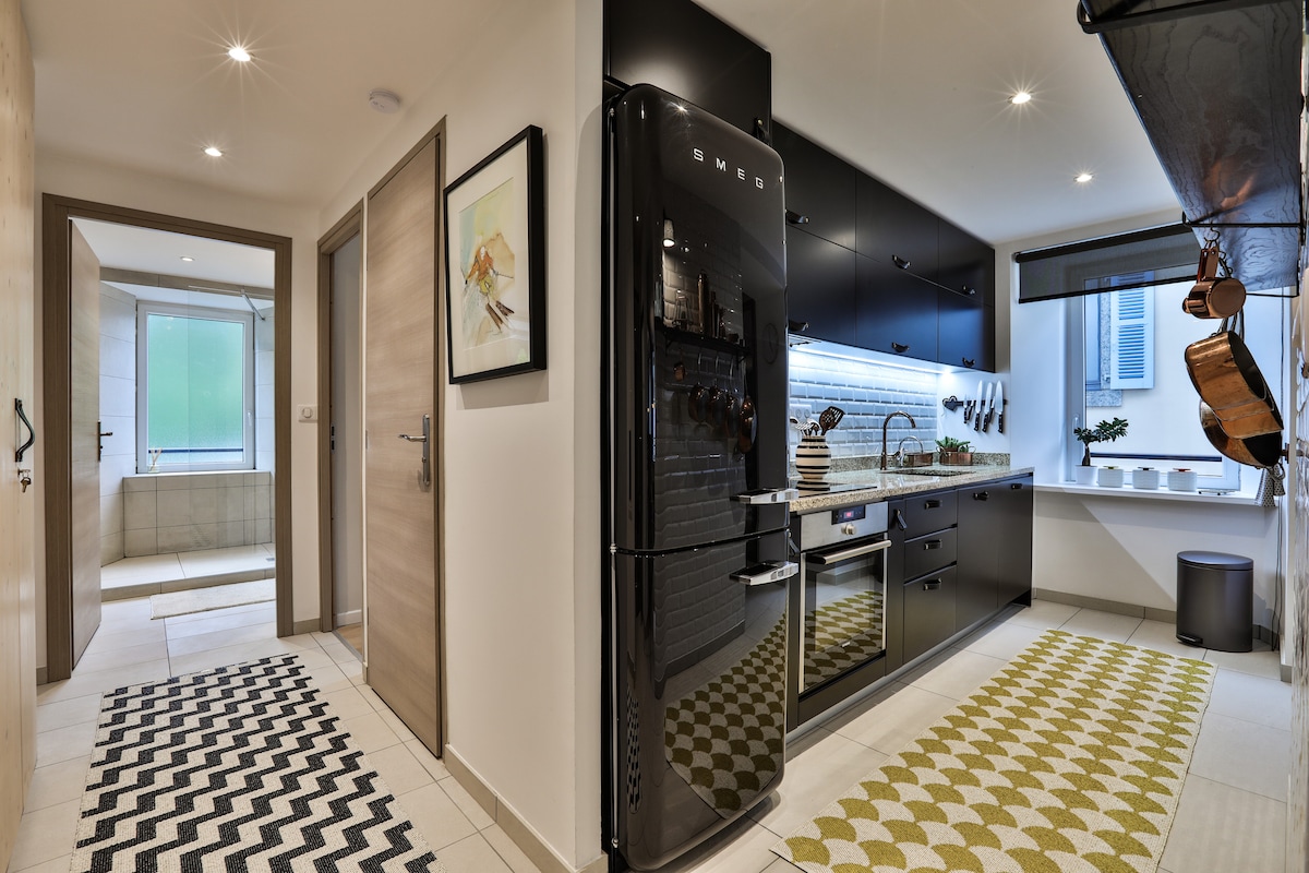 Opplev alt Chamonix har å tilby fra denne unike, luksuriøse ettromsleiligheten som ligger i hjertet av byens fotgjengersenter. Eiendommen har to balkonger med uovertruffen utsikt over Mont Blanc, en egen inngang og en kjeller for skiutstyr. Perfekt for enslige eller par. En uttrekkbar sofa ELLER seng i en krok kan romme en tredje gjest. Turistkort gitt til gjester, som gir rabatter på transport. **Offisielt klassifisert som firestjerners turistovernatting**