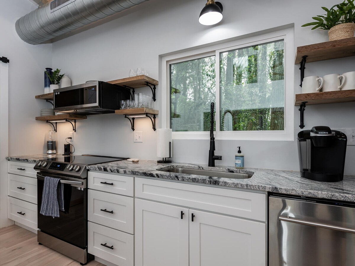 Urbant liv på sitt beste – minihus med fantastisk utsikt fra taket Velkommen til dette luksuriøse minihjemmet, hvor stil, eleganse og moro møtes i hjertet av byen. Til tross for den kompakte størrelsen, tilbyr denne studioleiligheten all sjarmen og det praktiske du trenger for et uforglemmelig opphold. Stedet er vakkert møblert med eksklusive møbler, og tilbyr komfort og stil. Du kommer til å elske det fantastiske badet, utformet med avslapning i tankene. Ligger i nærheten av Light Rail, Uptown, Plaza Midwood og NoDa.