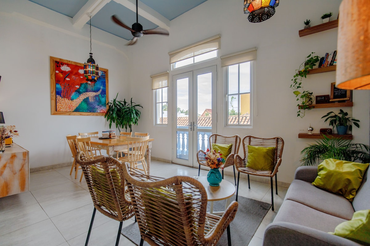 Nyt den koselige leiligheten vår i Getsemani, et av de glade og tryggeste stedene i byen. Du må gjerne nyte roen og komforten på de tre nivåene som er designet for deg. Gå opp til tredje etasje om morgenen for å nyte en god kaffe midt i en vakker karibisk dekorasjon. Om kvelden kan du nyte en god vin i selskap med familie eller venner og se på himmelen i Cartagena og havbrisen som kjærtegner deg.