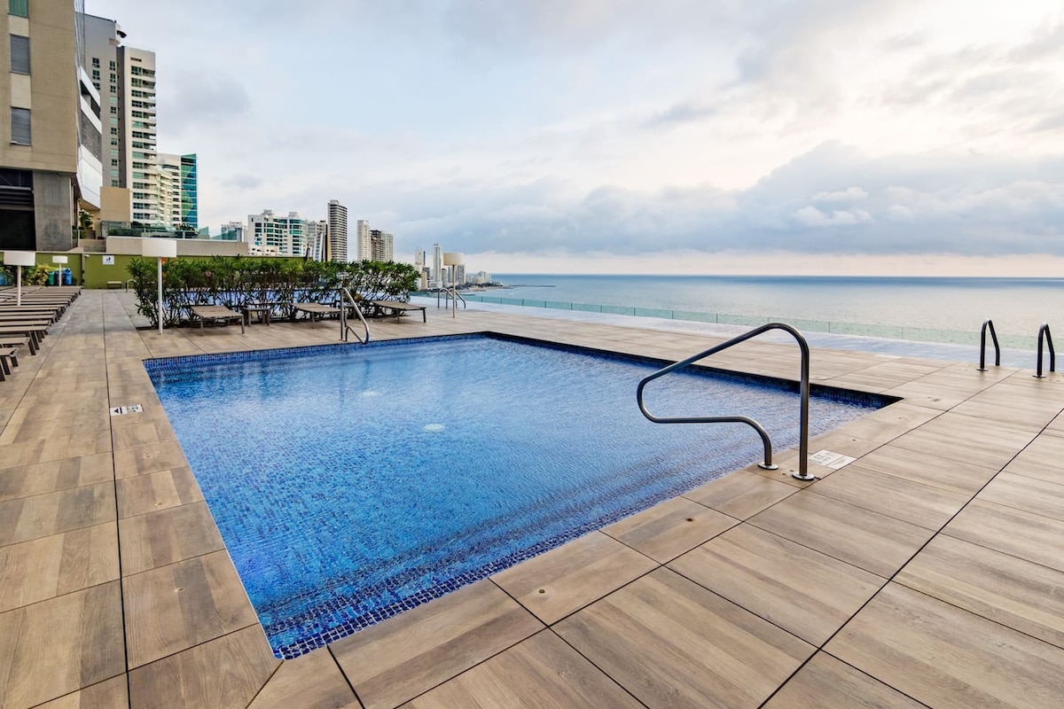 ✨ Luksustakleilighet: Byens beste utsikt i Cartagena, tilgjengelig for en perfekt og unik tur 🌊 Tenk deg å våkne opp til solen som går opp over den murte byen og havutsikten fra takleiligheten din. Beliggende i Bocagrande, og byr på eksklusivitet og komfort. Få direkte tilgang til kjøpesenteret Plaza Bocagrande, stranden, et infinity-basseng, et boblebad og gratis parkering. Ypperlig for luksusturer.