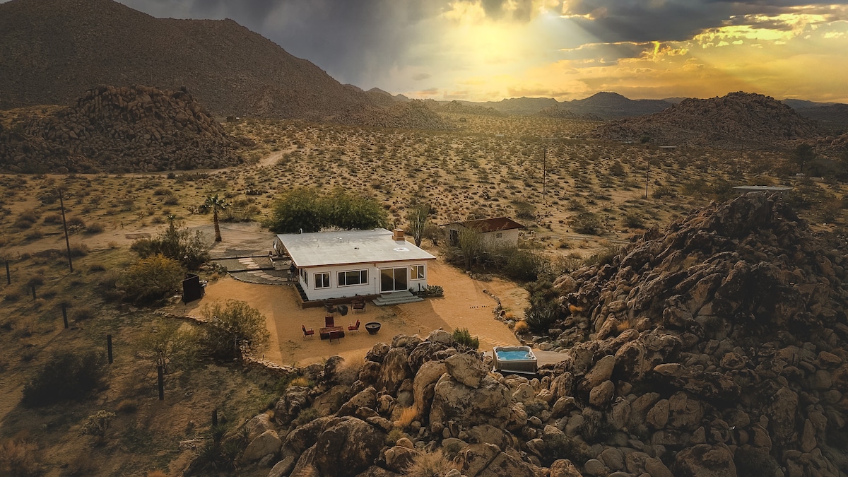 Welcome to the Hawkeye Dome Your entire mountainside awaits ✦ Iconic geodesic architecture ✦ Featured on the cover of Dwell Magazine ✦ THE best views in the entire Mojave ✦ 40-ft lap pool with underwater viewing windows ✦ Set against 112 acres of private hills ✦ See-through cabin for stargazing and meditating ✦ Miles of on-site trails ✦ Outdoor BBQ and fire pit for effortless outdoor living ✦ Just 8 minutes from Old Town Yucca Valley ✦ Originally built by nudist physicists - yes really.