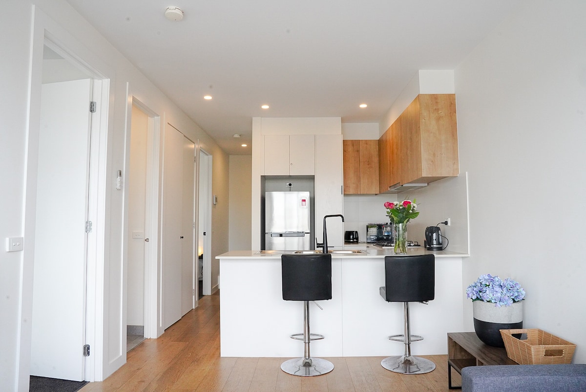 Slapp av i vår rolige, sentralt beliggende leilighet med to soverom og mye naturlig lys, og våkne opp til havutsikt. Med den hvite sanden på Chelsea Beach, Victory Park, lokale restauranter, stasjonen og Woolworths-supermarkedet innenfor ca. 100 meter, er alt i nærheten. Nyt den store terrassen med komfortable utemøbler, hvor du kan spise og se på solnedgangen eller lene deg tilbake i den luksuriøse skinnsofaen inne for å nyte 75-tommers-TV-en i den romslige, åpne stuen.