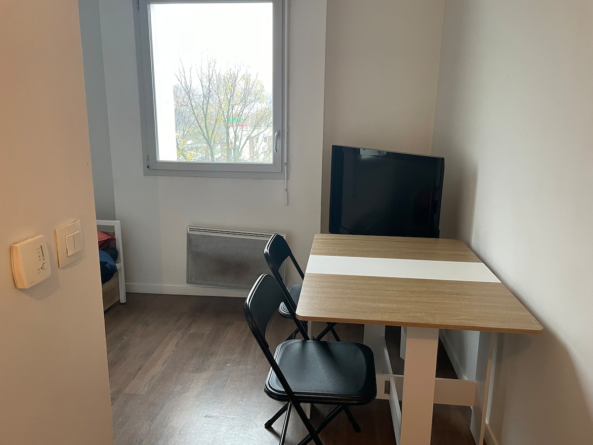Vakkert renovert studio på 35 m² som ligger i sentrum av Gonesse og nær alle fasiliteter (bakeri, banker, tobakk, nærbutikk, pizzeria ....) med plass til maksimalt 4 personer. Vår bolig ligger i første etasje i en gammel gård som er fullstendig renovert. Ideelt for forretningsreisende, par eller venner som ønsker å ha et hyggelig opphold på et rolig og fredelig sted.