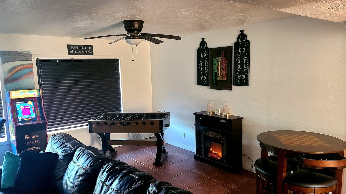 Sjarmerende hjem har romslig soverom (king size-seng), fullt bad (badekar/dusj), stue/spiseplass og fullt utstyrt kjøkken med stilige detaljer. Slapp av og slapp av på baksiden mens du hilser på de vennlige geitene. Overnattingsstedet ditt ligger i nærheten av byen, hvor du kan ha et snev av landskap, samt moderne fasiliteter overalt med nøkkelfri inngang, trådløst nettverk og smart-TV (W/D er også tilgjengelig). Det er et perfekt sted for et par, en liten familie eller en vennegjeng som ser etter litt av det hele ved siden av alt!