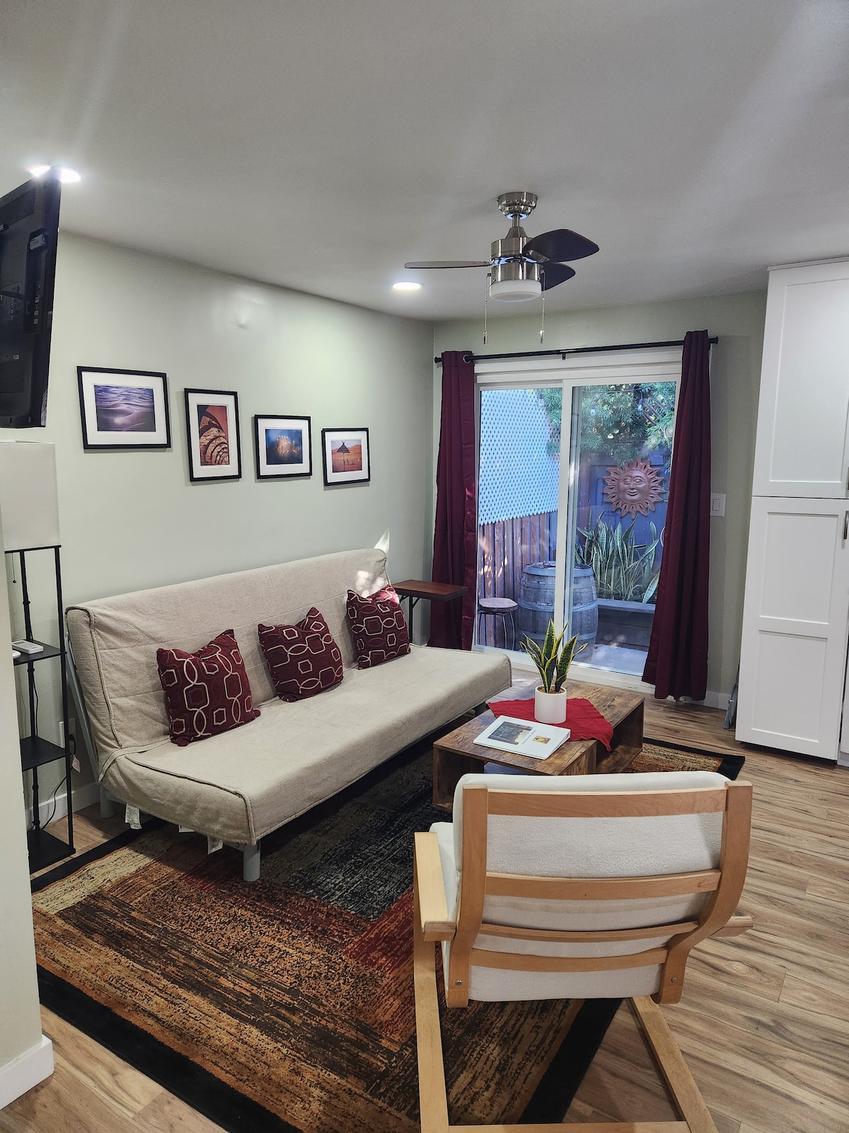 Privat, men sentralt. Det er ditt eksklusive paradisferiested å nyte fra ditt romslige gjestehus med ett soverom som ligger i nedre nivået av hjemmet vårt. Heng i den ekspansive og private bakgården med basseng, forskjellige sitteplasser og overdekket grillrom. Eller kanskje en treningsøkt i treningsstudioet. Sentralt plassert i landsbyen La Mesa. Bare en 1/4 mile tur inn i den sjarmerende landsbyen med sine mange utvalg av spisesteder, butikker og trikkestasjon. Motorvei nær strender, sentrum og flyplassen.