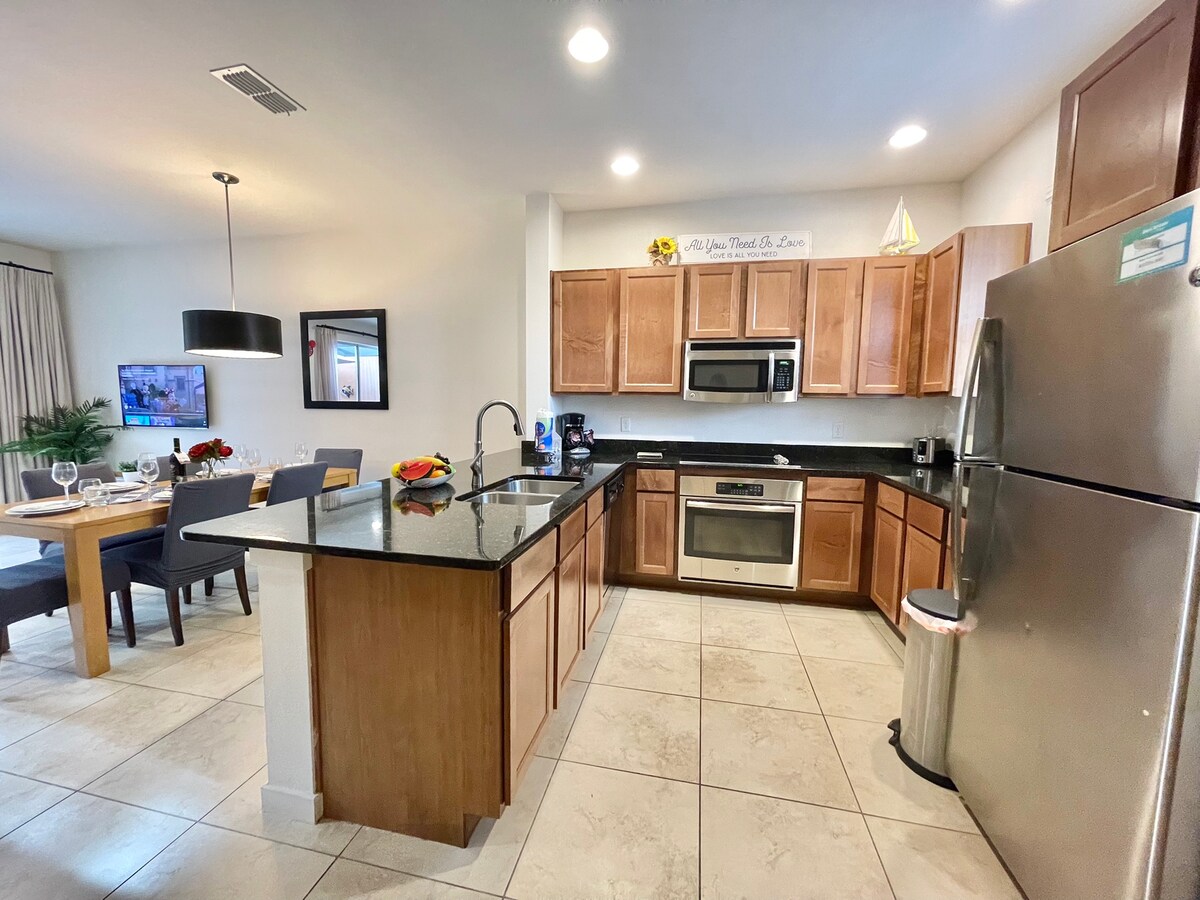 Bare 11 miles fra Disney World, og du er på dette fredelige tilfluktsstedet i det fantastiske West Haven-fellesskapet, ditt nye hjem hjemmefra. Dette huset er nettopp ombygget og nylig satt opp som et nytt feriehus. Familien din vil nyte to kingsuiter, en queen og et soverom med to enkeltsenger. Det nye kjøkkenet er utstyrt med alle apparater for å lage favorittmåltidet ditt. Formell spisestue vil samle alle for en fantastisk tid å huske. Bassengområdet med bålplass er et ekte tropisk paradis.