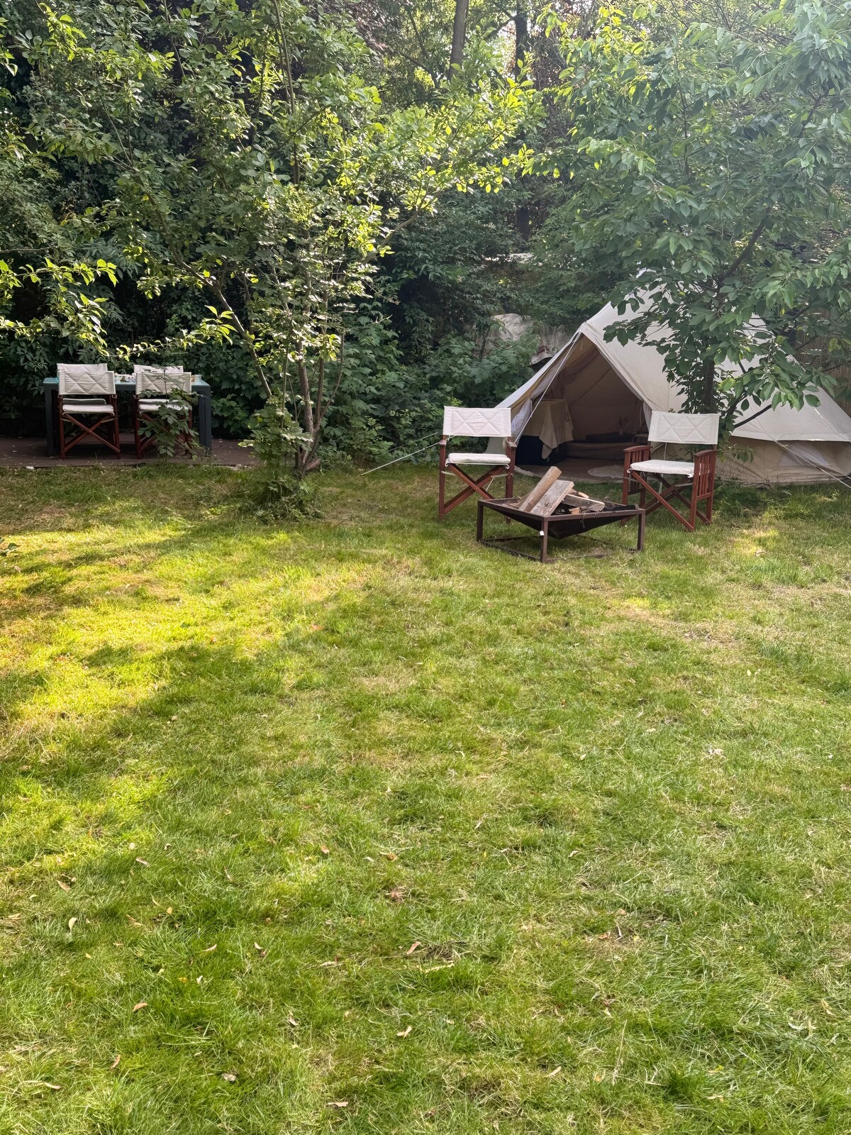 Glamping-telt i en grønn oase