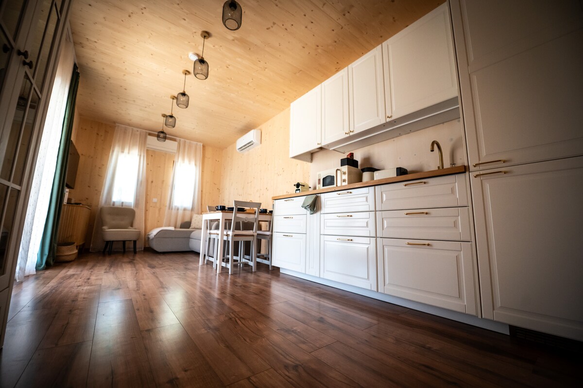 Den luksuriøse hytta venter på sine gjester i en eventyrlig fjellandsby i hjertet av Bükk nasjonalpark, omgitt av bøk- og furuskog. Det eksklusive trehuset med sin unike atmosfære gir fullstendig avslapning for par. En del av opplevelsen er den private jacuzzien i huset, hvorfra du kan beundre stjernehimmelen og den finske badstuen som er bygget på det høyeste punktet på tomten. Trehuset og badstuen tilbyr en enestående utsikt over landsbyen og fjellene i dalen, med en annerledes atmosfære hver årstid.