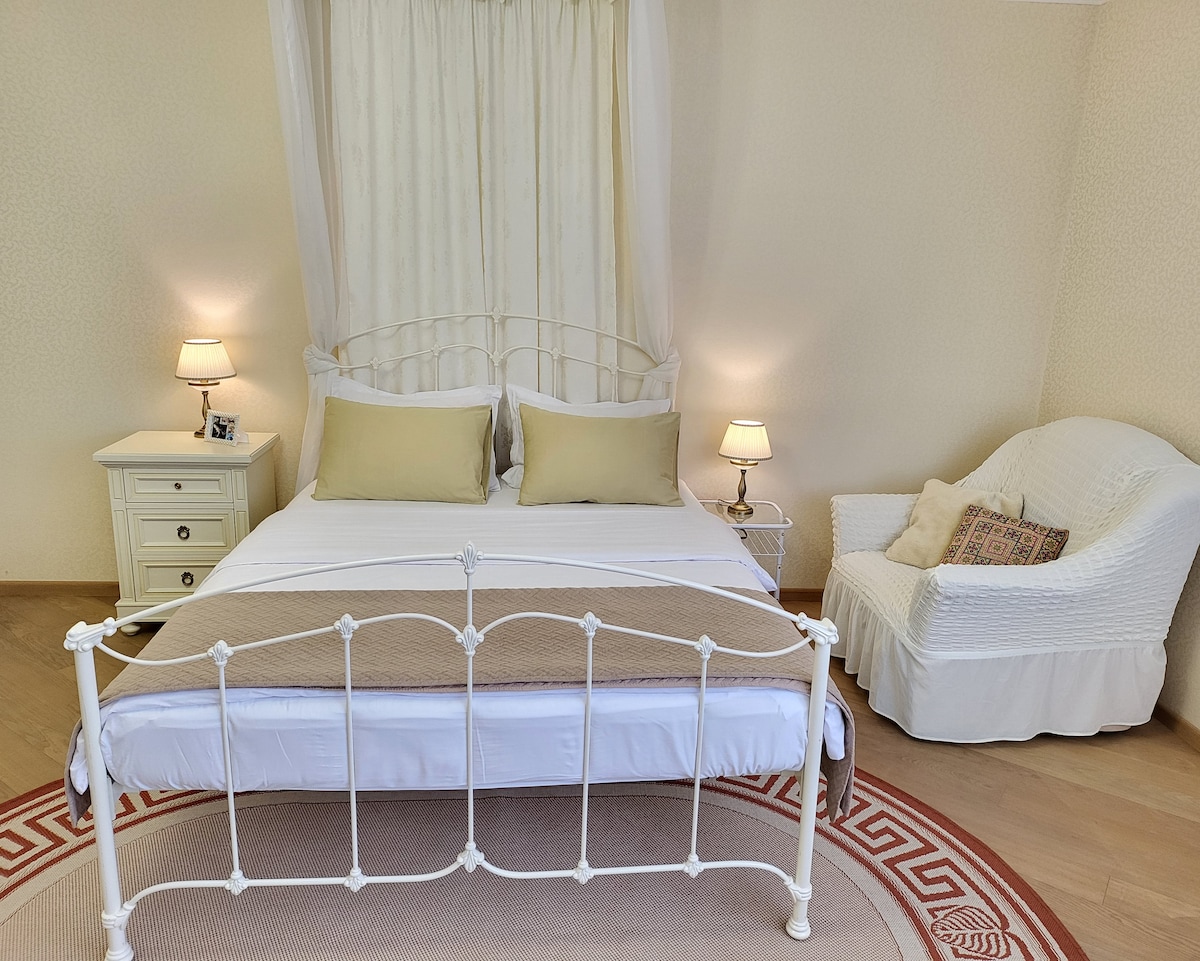 Et soverom, koselig og ren leilighet i et trygt og rolig nabolag innen 5–7 minutters gange fra T-banestasjonen «Left Bank». Veldig enkel tilgang til all byens infrastruktur, spesielt til «International Convention Centre», mange supermarkeder, dagligvarer og restauranter i området. Kontaktløs og enkel innsjekking (etter kl. 14.00) og utsjekking (før kl. 12.00) gjennom nøkkelboksen. Raskt trådløst nettverk på 100 Mbit. Fullt utstyrt kjøkken, kjøleskap, vaskemaskin, aircondition.
