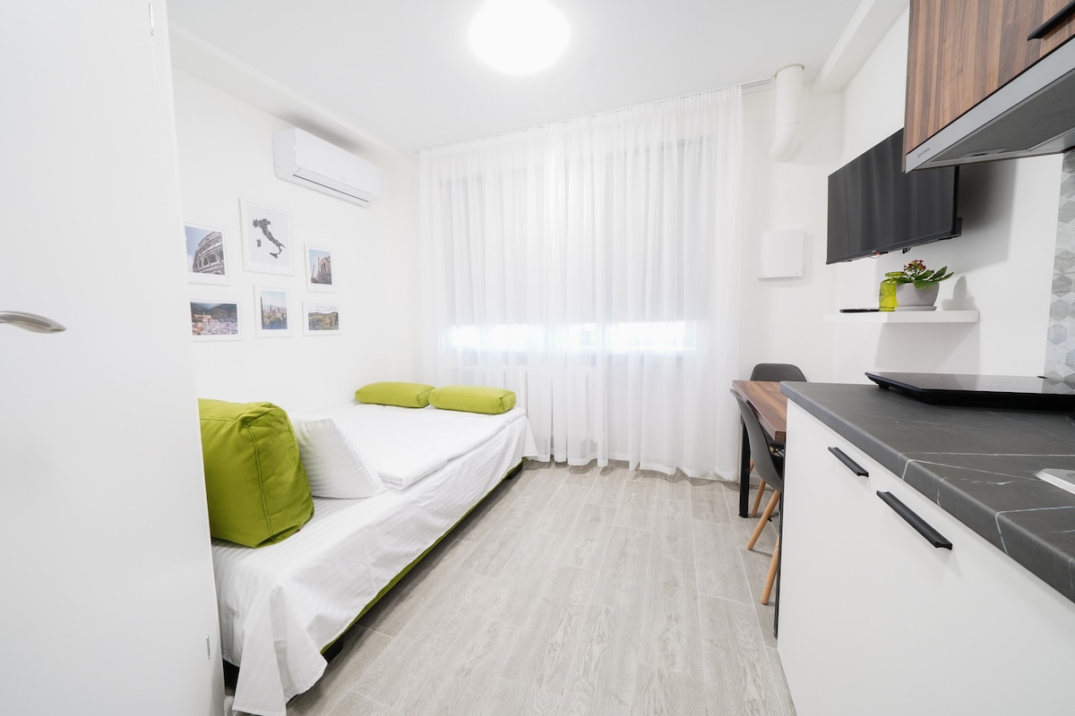 Lys og koselig leilighet i boligkomplekset Comfort Town. Leiligheten har alt du trenger for et komfortabelt opphold og et komfortabelt opphold. Friskt sengetøy og ortopedisk madrass vil gi en søt søvn. På kjøkkenet, utstyrt med alt du trenger, kan du lage favorittretten din. Avolumetrisk kjele vil gi varmt vann. Høyhastighets internett og TV gir deg mulighet til å ha det interessant.