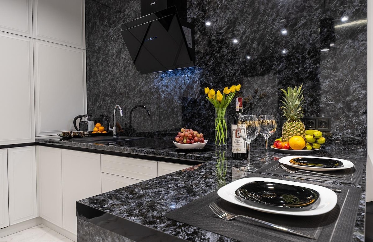 Borsch-leiligheten er en toromsleilighet i stil med en moderne ukrainsk hytte. Det er lys! Eiendommen har mulighet for autonom strømforsyning til hele leiligheten når du kobler til kraftstasjonene av Ecoflow-typen (hvis de har gjester), samt en kjele, oppvarmet gulv, fullt utstyrt kjøkken, stue, sove- og arbeidsområder, loggia, separat bad, vask og oppvaskmaskin, kaffemaskin, stekeovn, TV, robotstøvsuger osv.