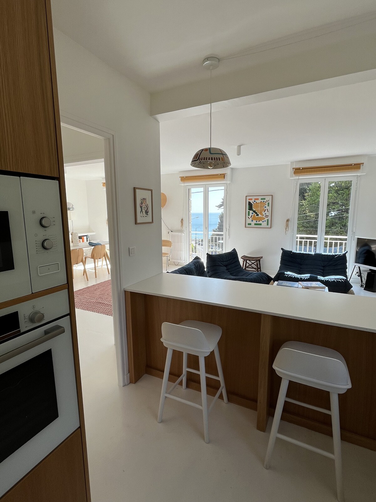 Le logement se situe au 2ème et dernier étage d’une petite résidence de quatre appartements SANS ASCENSEUR. Il est composé d’une pièce de vie ouvrant sur un balcon avec vue sur la baie, et d’une grande chambre avec un lit de 140 x 190 cm. Wifi et TV connectée. Capacité d'accueil 2 pers maximum. Au cœur du bourg, vous pouvez tout faire à pieds. Stationnement dans petite cour privée. Arrivée autonome avec boite à clés. Book avec mes adresses et lieux préférés.