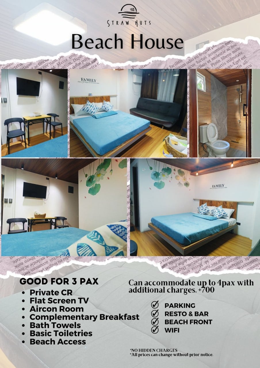 STRANDHUS ved stranden 🟠eksklusiv strandfront opptil 25 personer sovekapasitet med solnedgang på taket 🟠legg til 300 / pax i overkant av 20 pax (opptil 25 pax) 🟠Ett stort rom med klimaanlegg og terrasse med strandutsikt. 🟠spisestue og kjøkken 🟠toalett og bad 🟠gratis bruk av kjøkkenutstyr og gassutstyr 🟠med kjøleskap 🟠utendørs dusj 🟠gratis parkering for to biler ( 200 parkeringsgebyr hver ekstra bil) 🟠 parkering er privat (langs veien), to minutters gange til enheten. (ved stranden) 🟠Ingen korkavgift