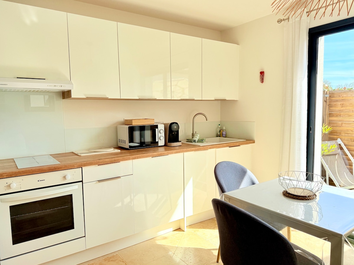 3 km fra Aubagne og santonniers, 30 minutter fra Aix-en-Pce og det historiske senteret, 30 minutter fra Marseille og Mucem, 30 minutter fra Cassis og Calanques og 20 minutter fra La Ciotat og strender, vårt lille provençalske hus på 35 m2 er komfortabelt og koselig, med parkering, loggia, en pen skyggefull hage på 1000 m2 og en fantastisk utsikt over åsene. Plassert rett overfor La Font de Mai, kan du også oppdage alle turstiene i Pagnol rundt Garlaban.