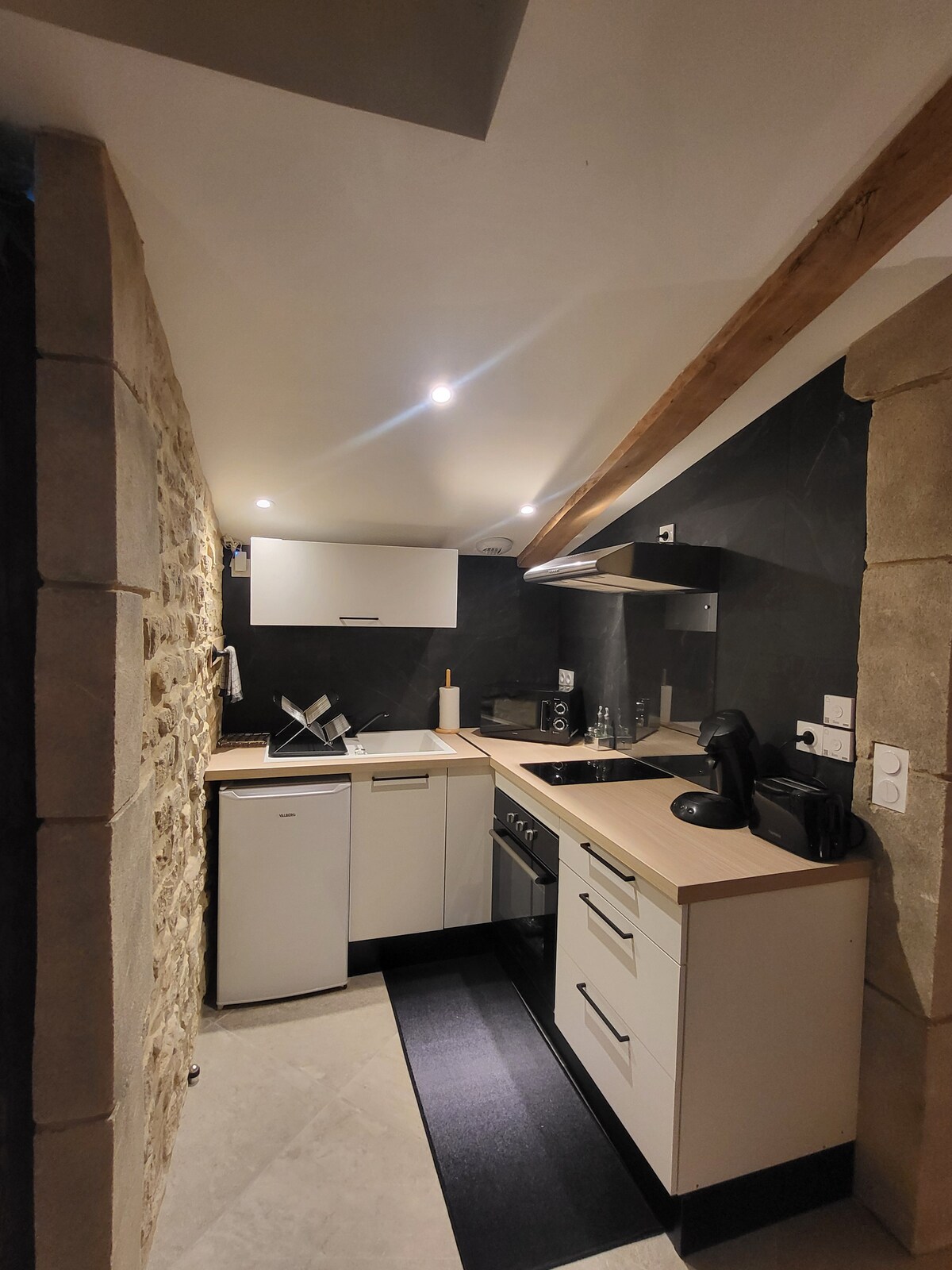 Pensjonatet er organisert som en duplex, og består av et soverom og et tilstøtende bad, og en stue utstyrt med kjøkken. Innredningen kombinerer tradisjon og modernitet, med de originale stein- og terrakottagulvene ved siden av lerretet til en moderne kunstner. Disse to stedene utgjør et vakkert område på 40 kvm. De er forbundet med en praktfull vindeltrapp i smijern som kan være veldig smal! Privat parkering tilgjengelig mot en ekstra kostnad.
