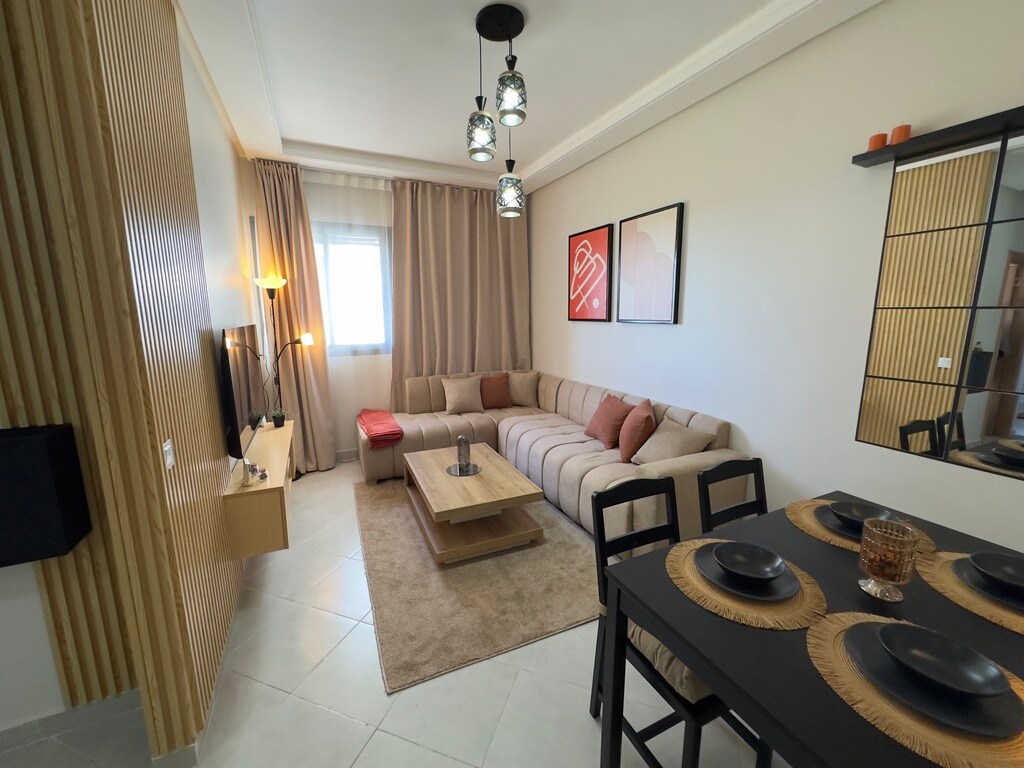 Nyt denne fantastiske nye boligen med familien, rolig og trygg, nær alle fasiliteter. Bruk denne elegante boligen med hele familien. Leiligheten ligger bare 7 minutter med bil fra de vakre strendene på Atlanterhavskysten, 5 minutter med bil fra Tanger flyplass og TFZ-frihandelsområdet, og bare 5 minutter med bil fra Grand Stade de Tanger og busstasjonen. 200 m unna, på veien til Rabat, finner du et supermarked og flere kjente varemerker