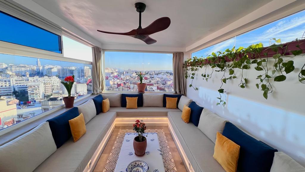 Dette hjemmet ligger ved siden av det ikoniske Forbes Palace og tilbyr en autentisk forbindelse til Tangers kulturelle arv. Med stilig design, panoramautsikt over havet og velholdt innredning kombinerer den luksus og komfort i rolige omgivelser. Ideelt for dem som ønsker seg et spesielt opphold ved stranden, med tilgang til byens viktigste interessepunkter. Nyt unike solnedganger fra den lukkede balkongen og interiøret designet for hvile og inspirasjon.