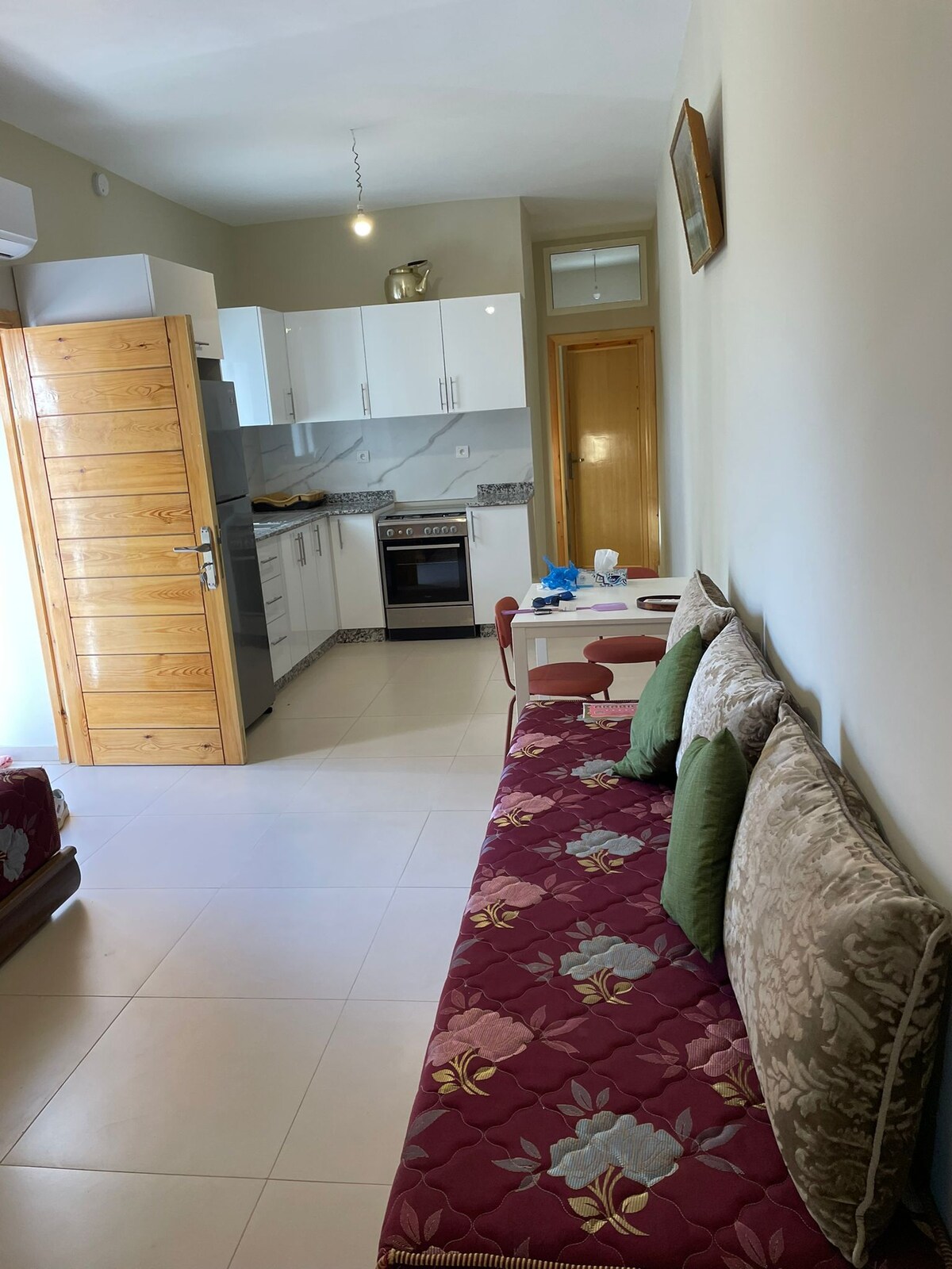Denne romslige leiligheten på 55 kvm ligger 30 minutter fra El Jadida, og har alle nødvendige fasiliteter for et hyggelig opphold i gårdshuset vårt. Med plass til opptil 4 personer, er det ideelt for en familie eller en vennegjeng.