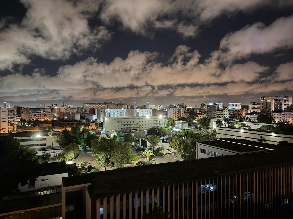 Lys og moderne studio, en ekte komfortabel kokong. Den har en elegant stue med en sofa som kan konverteres til en seng, dekorert med raffinerte puter og kunstneriske malerier, noe som skaper en beroligende atmosfære. Det fullt utstyrte kjøkkenet lar deg tilberede måltidene dine. Solrik balkong perfekt for å beundre solnedgangen. Ideelt plassert i Casablanca, nær Hassan II-moskeen, perfekt for reisende som ønsker både komfort, stil og moderne fasiliteter.