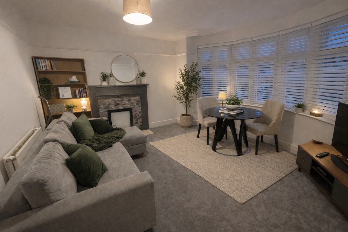 Vakker selvstendig leilighet med en salong i andre etasje og sitteplass på balkongen med nydelig utsikt over sjøen. Vi ligger fem minutters gange fra Alum Chine Beach, og langs promenaden ligger Bournemouth sentrum nøyaktig én miles gange unna. Vi ligger 15 minutters gange til landsbyen Westbourne, og drar nytte av boutiquekafeer og kosmopolitiske restauranter. ********************************** Nytt i 2020 er at vi har forpliktet oss til Airbnbs forbedrede rengjøringsplan for å gi deg ro i sinnet. Dette inkluderer sertifisering.