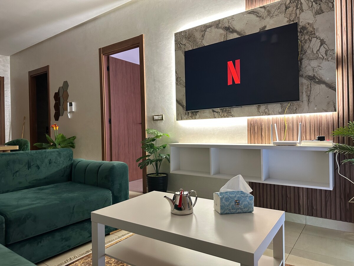 Luksusleilighet ★ ved stranden - Bouznika ★ Vil du ha et opphold med komforten til et 5-stjerners hotell til en rimelig pris? Du trenger ikke lete lenger, bestill nå! 🌟 Komfort, eleganse 🌟 Nyt en eksklusiv leilighet ideelt plassert i en sikker bolig, en kort spasertur fra stranden og de viktigste attraksjonene i Bouznika. Ultrahurtig fiberoptisk✅ tilkobling ✅ Perfekt for ferier eller jobbreiser Fredelig ✅ omgivelse, sikkerhet døgnet rundt.