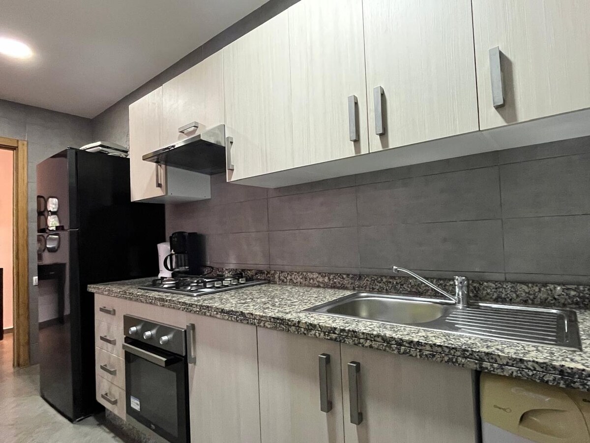 ✨ Elegant feriested i hjertet av Casablanca, rett overfor togstasjonen Casa Port. Denne lyse og romslige leiligheten på 83 kvm tilbyr all komforten du trenger for et perfekt opphold, og har plass til opptil fem gjester. Den har to fredelige soverom med utsikt over hagen, en stue i hjemmekino-stil (75" TV), en balkong med utsikt over Hassan II-moskeen, et fullt utstyrt kjøkken og et eget arbeidsområde. Perfekt for avslappende øyeblikk, enten det er for en helg eller et lengre opphold 🌇🌿