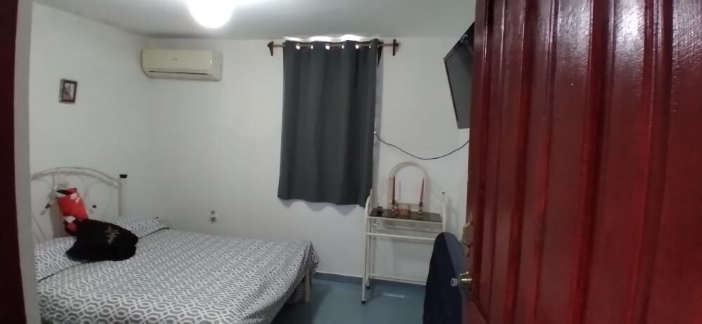 Habitación privada con una cama matrimonial y un encantador cuarto de baño.Ubicada en los altos de la casa. Contamos con una amplia terraza privada situada en el segundo piso donde puedes ver el paisaje del lugar. El cuarto de baño con agua fría y caliente,secador de pelo, artículos de primera necesidad. En la Habitación WIFI, Tv, minibar,split. Ubicacion. Calle 202 # 29315 entre calle 293 y calle 295 Calixto Sanchez boyeros. La Habana