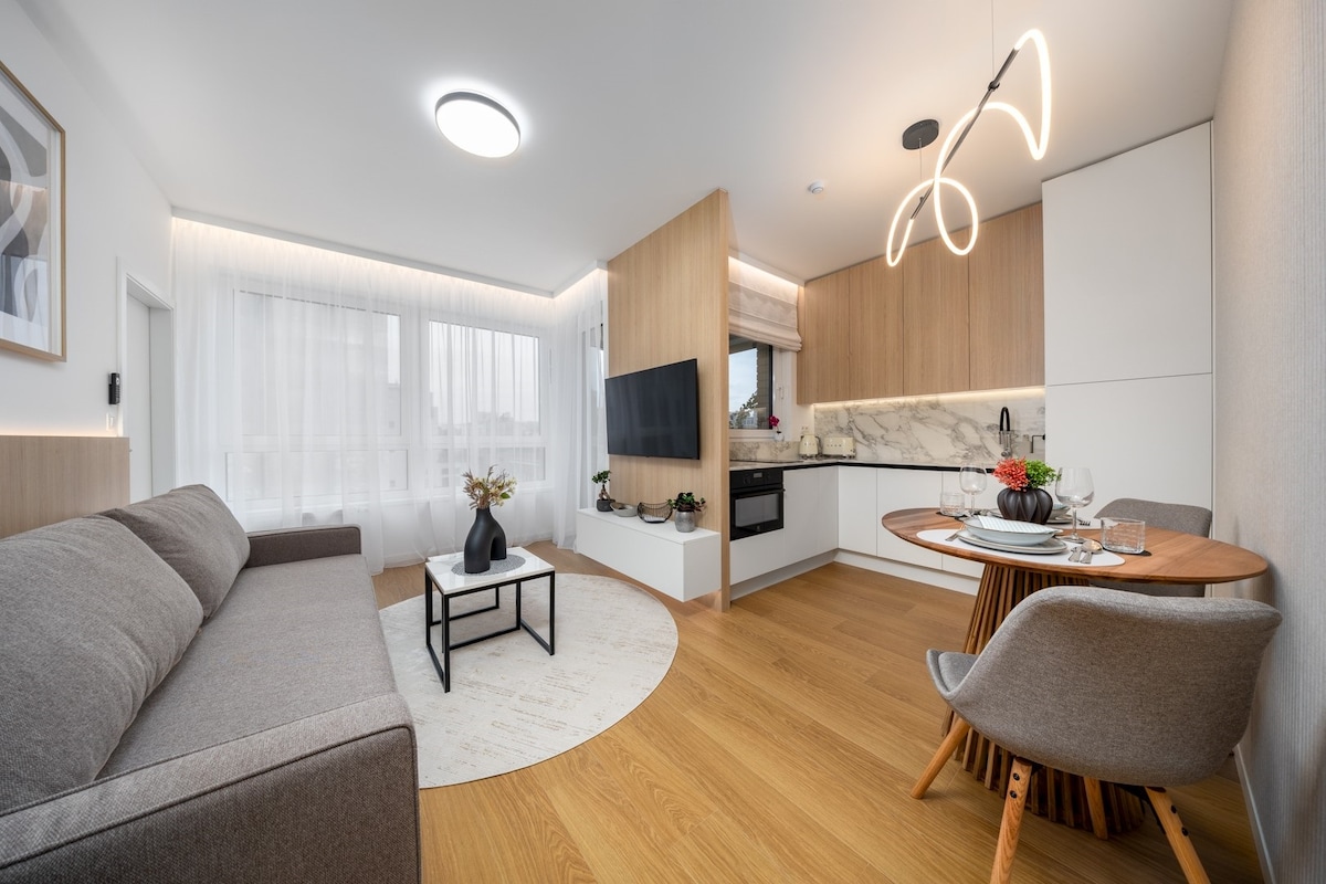 – Stilig og moderne leilighet på Metodova 3, rett ved siden av Central Mall. – klimaanlegg, raskt trådløst nettverk og smart-TV for maksimal komfort – Gratis privat garasjeplass rett i bygningen. - Fullt utstyrt kjøkken med gratis kaffe og te. – Gangavstand fra sentrum, restauranter, velvære- og treningssentre. – Gangavstand til ishockey- og fotballstadion. – Ideell for forretningsreisende, par og helgeopphold.