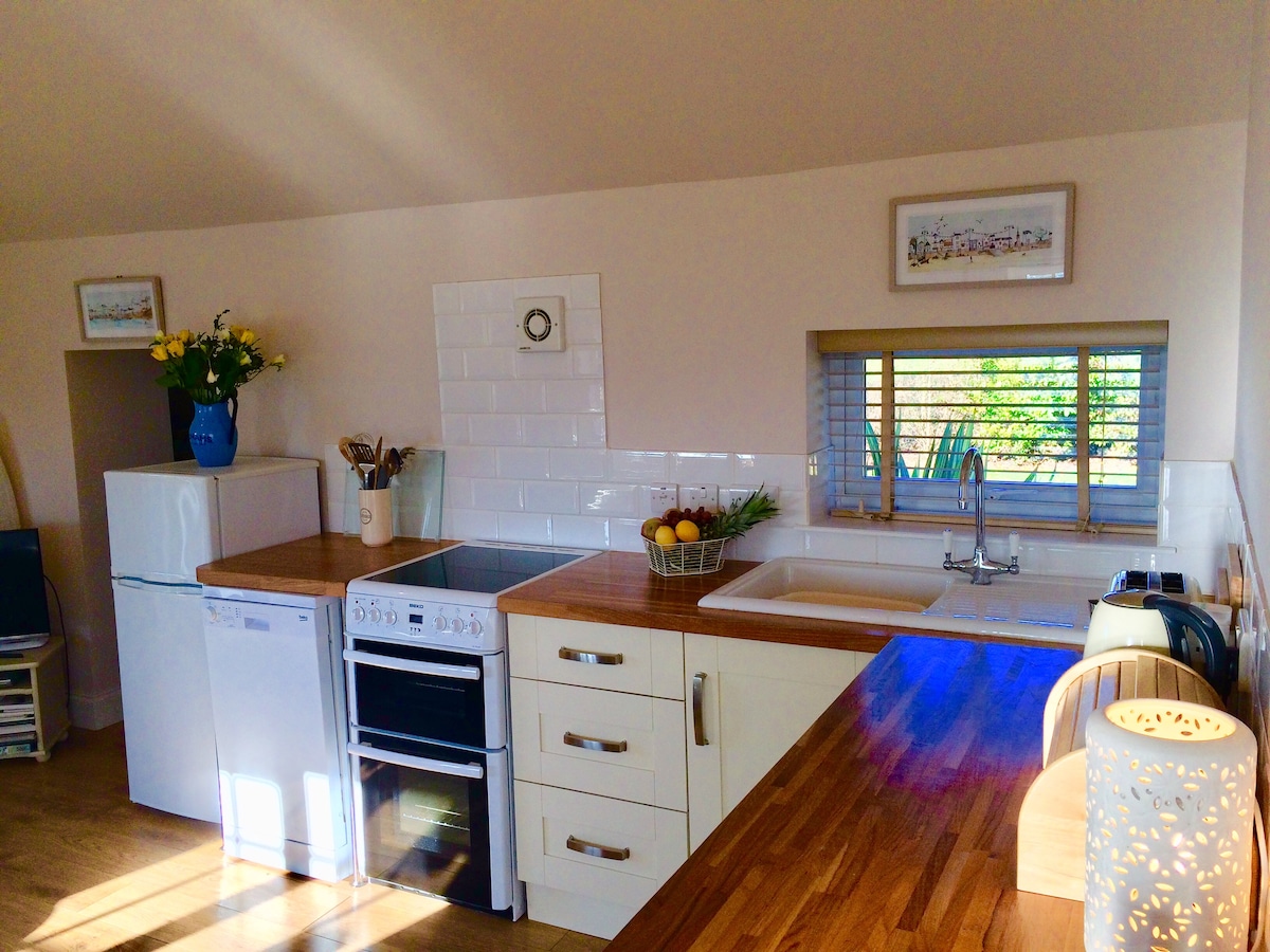Hytte med to soverom (én dobbeltseng , én enkeltrom), med hage som ønsker opptil tre voksne velkommen på en fredelig beliggenhet, innenfor en kort tilgjengelig spasertur til Weybourne-stranden. Flotte puber og delikatesseforretninger/kafé innenfor enkel spasertur i sentrum. Lading av elbil (depositum og betaling per kW). Oppbevaring tilgjengelig for tre sykler (ta med egen hengelås). North Norfolk er kjent for Dark Skies-status og fantastisk utsikt mot stjerner under de riktige forholdene og Big Norfolk Skies på dagtid. En sentral beliggenhet for å nå mange av områdets attraksjoner