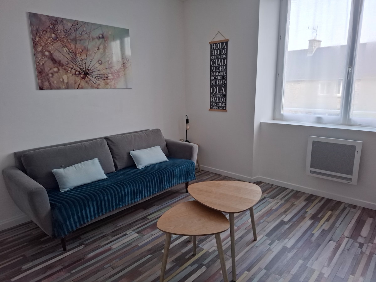 Uavhengig bolig i første etasje med egen inngang, i en paviljong som ligger i sentrum av byen, i sentrum av Manche med butikker i nærheten. 28 m² bolig med 2 rom adskilt av en skillevegg -1 stue med fullt utstyrt kjøkken (elektrisk ovn, kokeplate, mikrobølgeovn, kjøleskap, vaskemaskin) spisestue / stue (sovesofa, TV) - 1 soveplass med dobbeltseng (sengetøy følger med) - bad (dusj / vask / toalett) med dør (håndklær følger med