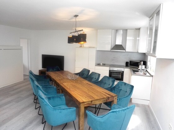 Charming 60m2 family apartment in a quiet location, ideal for families, groups, and contractors. The apartment offers two bedrooms, a living room with a sofa bed, Smart TVs, fast Wi-Fi, and a large garden. There is also a balcony and a private parking space. Flexible self-check-in, travel cot for children upon request. Close to attractions such as the Allwetterbad, Ohlenstedter Quellsee, and Bremen. No pets, non-smoking apartment, assistance animals upon request.