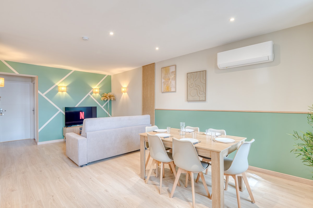 *Sentrum*4 pers*Terrasse*Klimaanlegg*nær togstasjon*