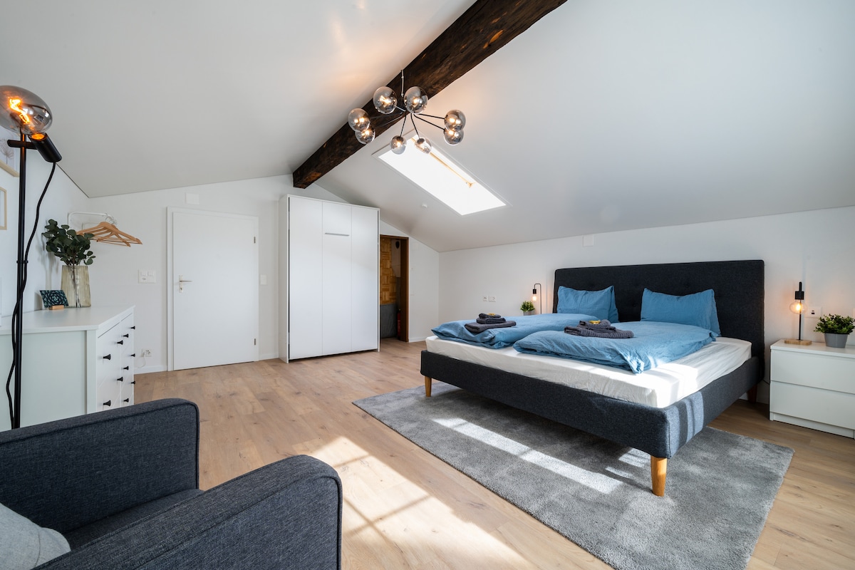 Sichere dir diese moderne, stylische Unterkunft für deine Auszeit mit Familie und Freunden. Atemberaubender Balkon mit Traumsicht auf See und Berge. 💛 🛏 3 liebevoll eingerichtete Zimmer 🛁 Highlight - nur bei uns: freistehende Badewanne mit Blick auf See 🛁 ein grosses Badezimmer mit WalkIn-Dusche & Badewanne 🛁 zusätzliche separate Toilette 🍽 Voll ausgestattete Küche ☕ NESPRESSO-Kaffeemaschine 🧺 Waschmaschine und Trockner