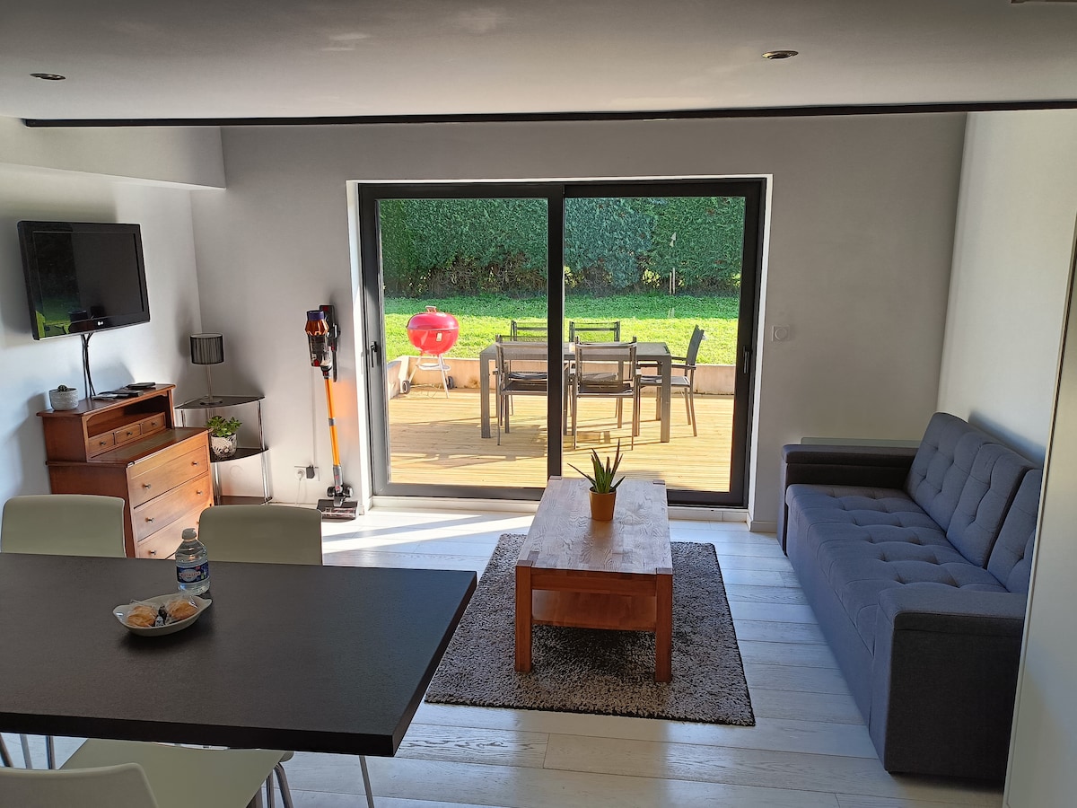 Koselig studio fullstendig renovert, moderne og nyutstyrt for din komfort: stue, utstyrt kjøkken, dusj og separat soveområde med luksuriøst sengetøy, internett inkludert. Svært sjelden, drar studioet fra en terrasse og et inngjerdet anlagt eksteriør, samt hagemøbler veldig merkbar om sommeren, slik at ro, å ha en drink, til lunsj, eller å dra nytte av solen. Ved foten av Monts du Lyonnais og veldig nærme tur- og terrengsykkelstier.
