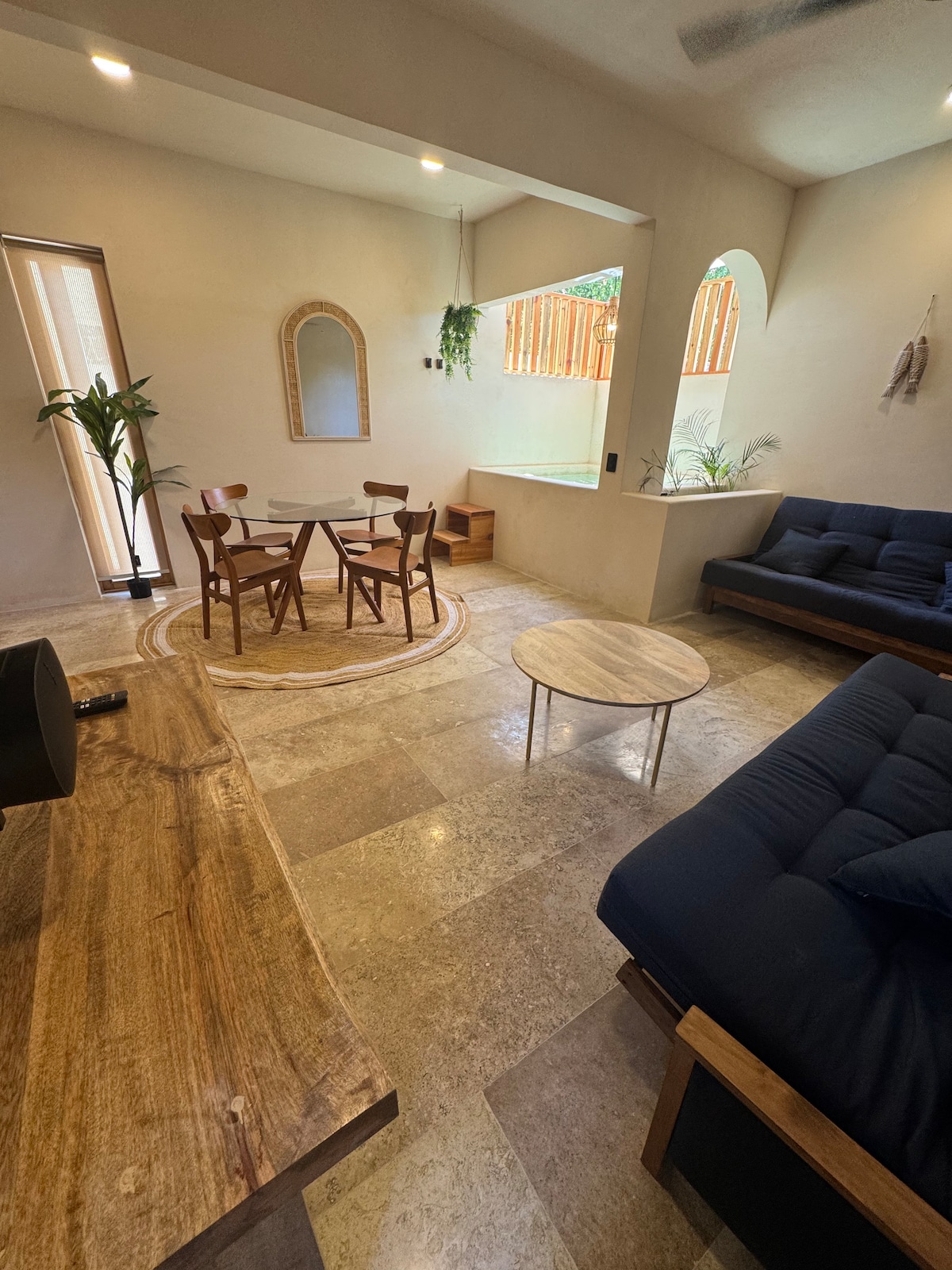 Denne unike og ferske leiligheten vil få deg til å føle deg som hjemme! Nyt din frihet og privatliv på kjøkkenet og i stuen - og/eller del noen spesielle minner i hengekøyen på vår solnedgangsterrasse og slapp av ved bassenget i skyggen med andre. Alt dette 50 meter over havet, men bare noen skritt unna å gjemme tærne i sanden, eller nyte frisk juice, typisk mat eller hva enn hjertet ditt ønsker i de mange restaurantene like nede på veien.