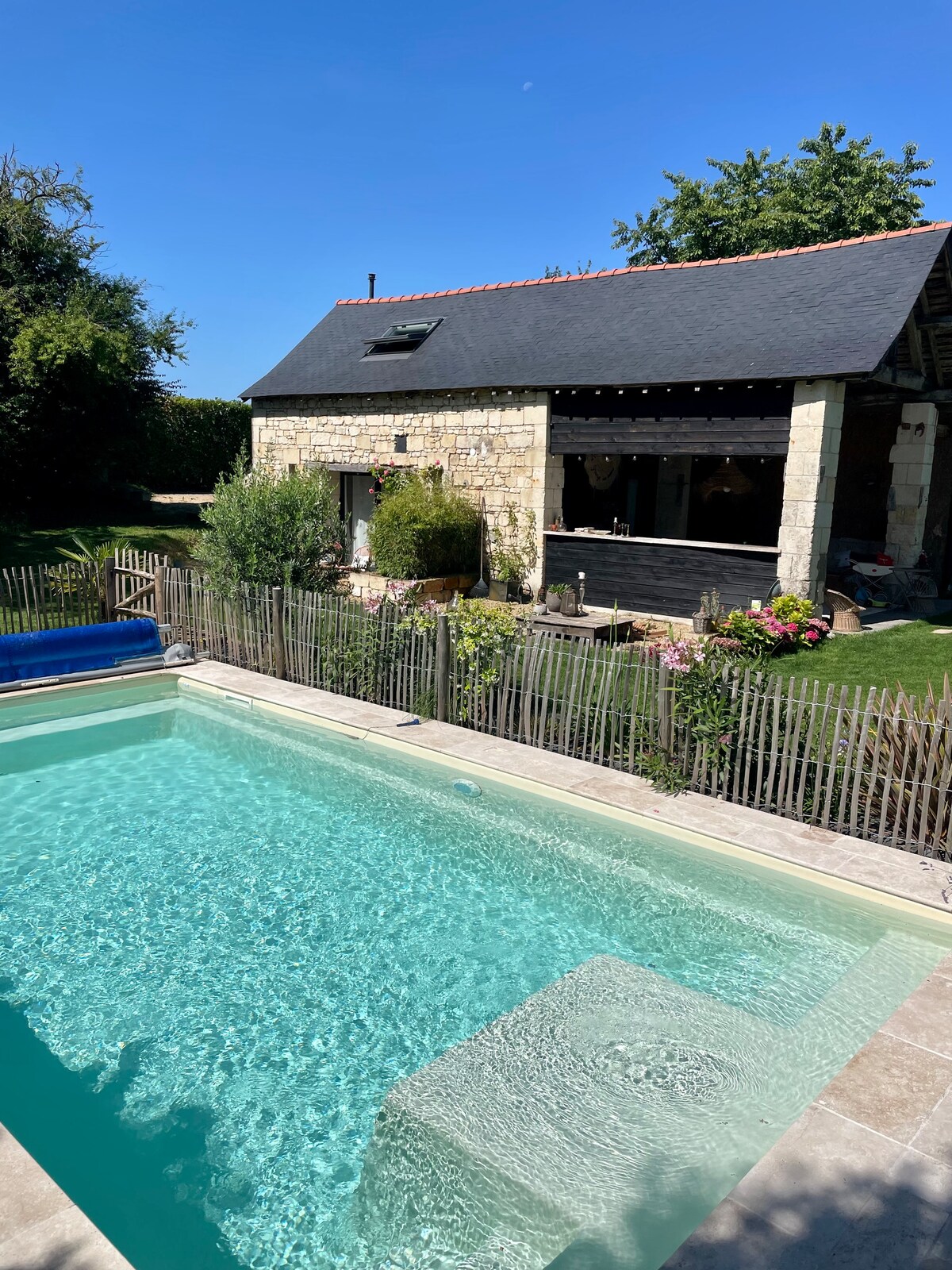 Hus boho chic oppvarmet basseng stort spa 8m Angers
