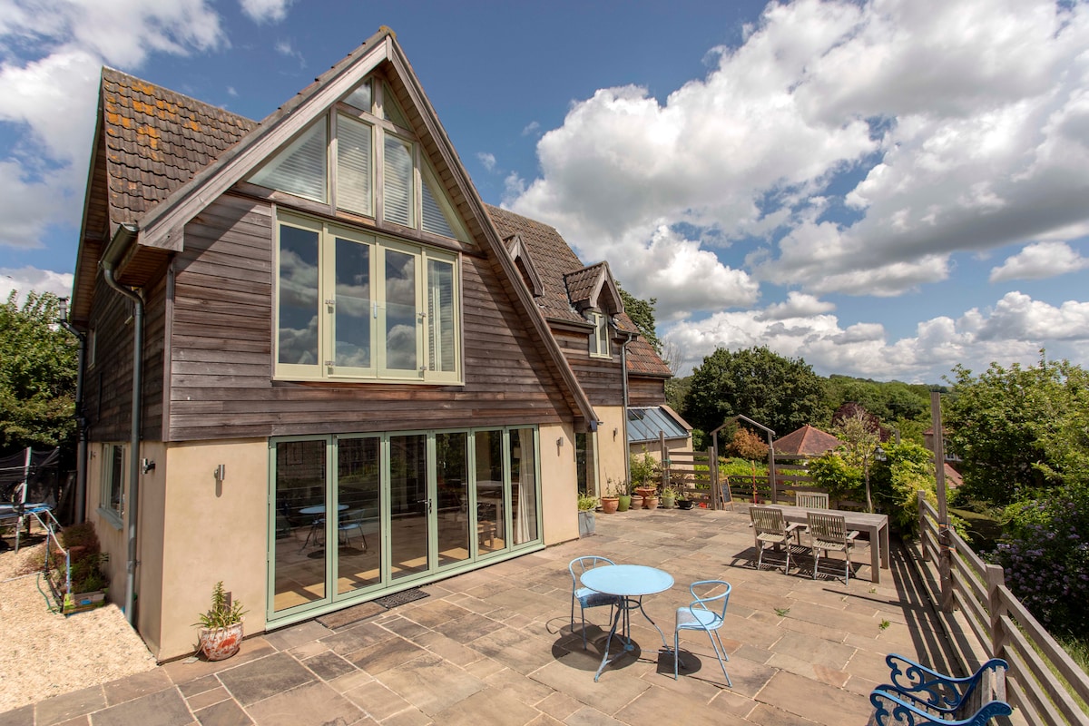 Ombygd låve med fantastisk utsikt over Somerset Levels