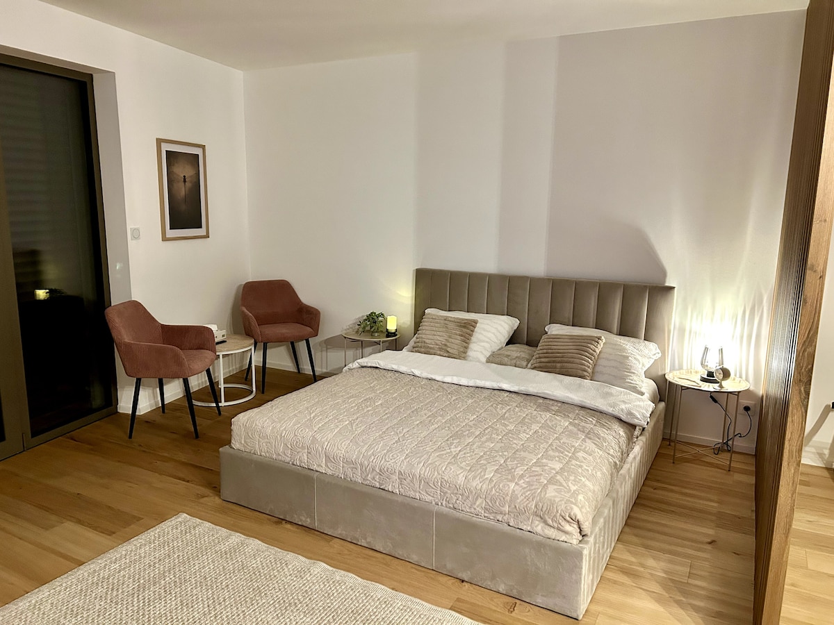 ☕ Moderne leilighet i Brno med privat balkong, koselig badekar, tilgang til et treningssenter og en kafé og et bakeri rett nedenunder. Betalt parkering er tilgjengelig på stedet🚗. Perfekt for par, alenereisende eller forretningsreisende. Stille beliggenhet i Brno, bare noen minutter fra sentrum. Ideelt sted å slappe av, utforske og nyte oppholdet ditt. 🌿