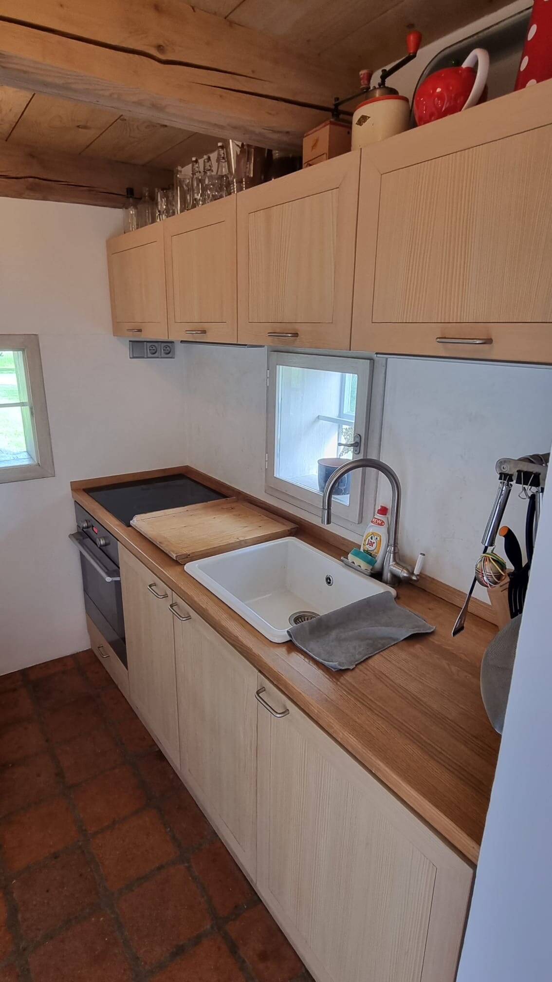 Hytta ligger i utkanten av landsbyen på et fint sted midt i naturen. Det er frittstående med tilstøtende ildsted hvor du kan grille med egen inngang. Det er mulig å parkere foran garasjene til familiehuset bak gjerdet, den innkvarterte gjesten har sin egen fjernkontroll til porten, og deretter kan man gå 100 m langs fortauet til hytta.