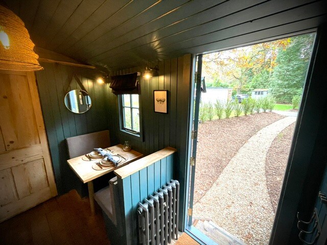En sjarmerende gjeterhytte i eik, som ligger på en liten eiendom på to hektar i hjertet av New Forest. Vi driver et bryggeri (PIG BEER) med en ølhage på stedet. Vi spiller bakgrunnsmusikk fra kl. 12.00 til kl. 20.30 om sommeren. Sjekk ut @pigbeerco for gjeldende åpningstider. Vi har en utmerket gårdsbutikk og vingård ved siden av, og en god pub (The Filly) innen to minutters gange. Setley ligger to minutter med bil utenfor Brockenhurst. Vi er 20 minutter fra Highcliffe Beach og 5 minutter fra Lymington.