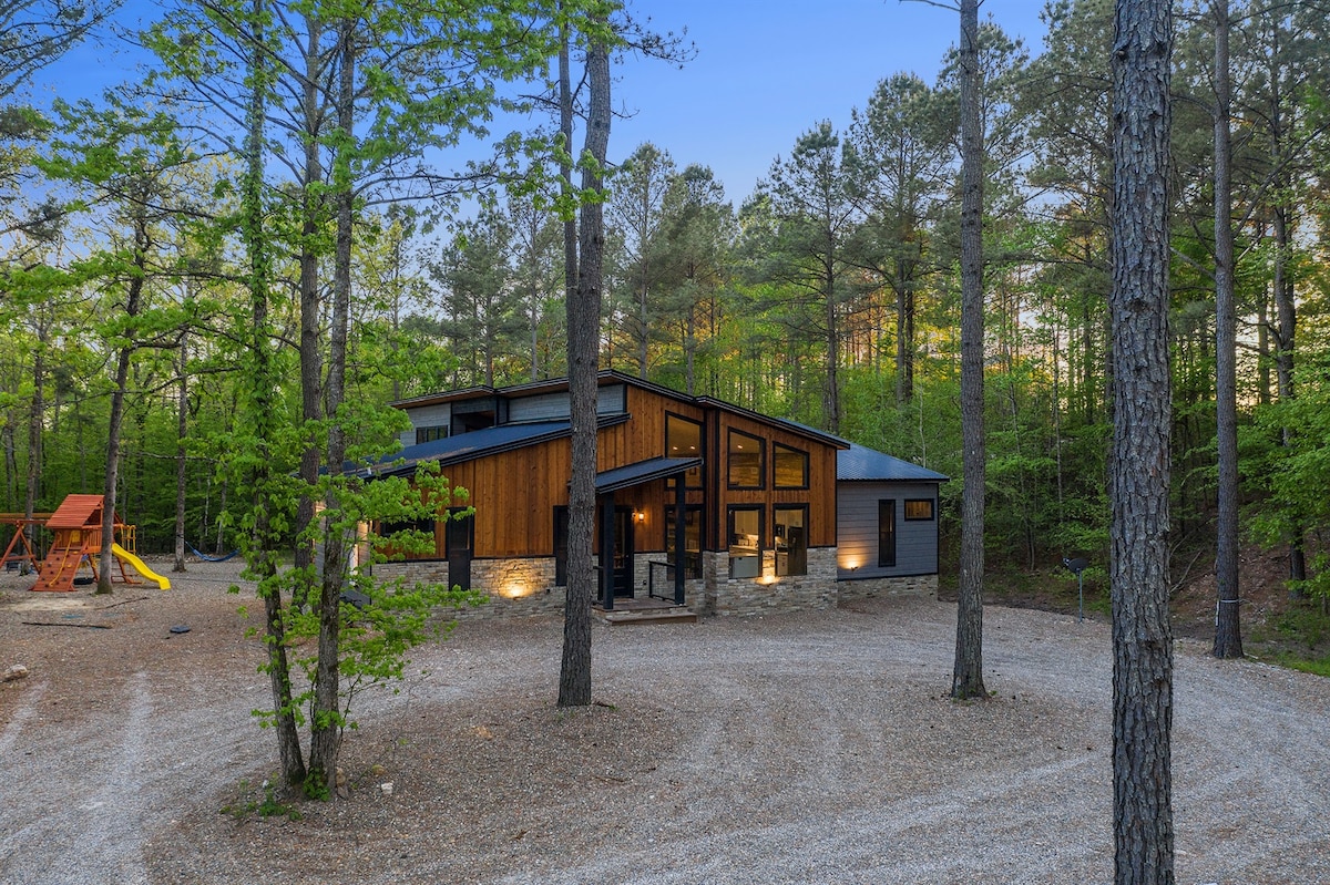 Velkommen til Harmony Hill – et nytt luksuriøst tilfluktssted i det ettertraktede Woodland Ridge i Broken Bow, Oklahoma. Dette feriestedet med fire soverom blander rustikk sjarm med eksklusiv komfort, og tilbyr et perfekt sted for avslapning og kontakt. Nyt en åpen planløsning, vidstrakt utsikt over skogen og gjennomtenkte designdetaljer overalt. Harmony Hill ligger omgitt av Ouachita-skogen, og er en rolig og stilig base for uforglemmelige minner i naturen.