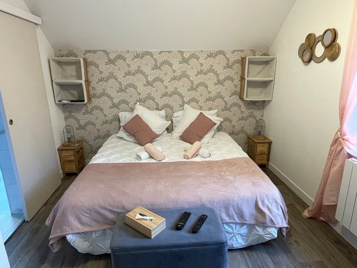 Landlig 🍀 ferie med privat sauna – garantert avslapning 🧘 Er du på utkikk etter en grønn pause? Denne uavhengige kokongen ligger i hjertet av en gammel gård, mellom natur og komfort, og har alt du trenger for et fredelig opphold. ☺️ Nyt det store området rundt eiendommen, dammen, petanque-banen og oppdag turstiene rundt landsbyen. 🚶 Perfekt for en avslappende helg for to eller alene. 👋