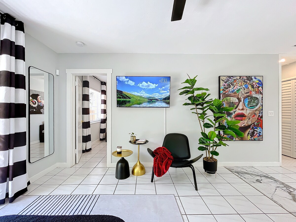 Vår Art Loft Retreat-villa ligger i det pulserende hjertet av Oakland Park, og er det perfekte, rolige tilfluktsstedet i nærheten av alt. Bare noen minutter fra den livlige Wilton Drive, Las Olas Blvd, Fort Lauderdale-strendene, shopping og spisesteder. Nyt eklektisk kunst, moderne fasiliteter, raskt trådløst nettverk, en privat terrasse og et koselig oppholdsrom. Ideelt for en avslappende ferie eller et urbant eventyr. Bestill oppholdet ditt og oppdag det beste av Wiltons kunstneriske sjarm.