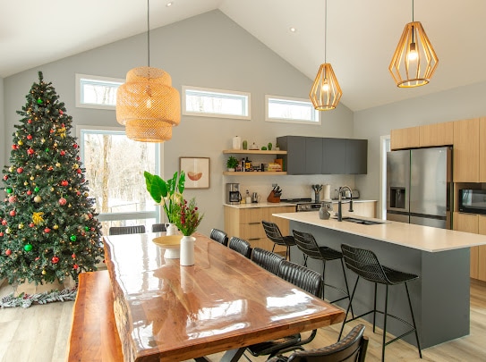Le Frāho est un chalet vitré luxueux avec spa situé sur le club de golf du lac Carling. Ce chalet moderne de 1100 pieds carrés a été construit en 2019 et est entouré d'une vue à couper le souffle. Situé dans l'incroyable région des Laurentides au Québec, il peut accueillir jusqu'à 6 personnes et a été soigneusement aménagé pour la détente. Les grandes fenêtres enveloppant le chalet attirent une abondance de lumière naturelle, vous offrant une expérience immersive de séjour dans la nature.