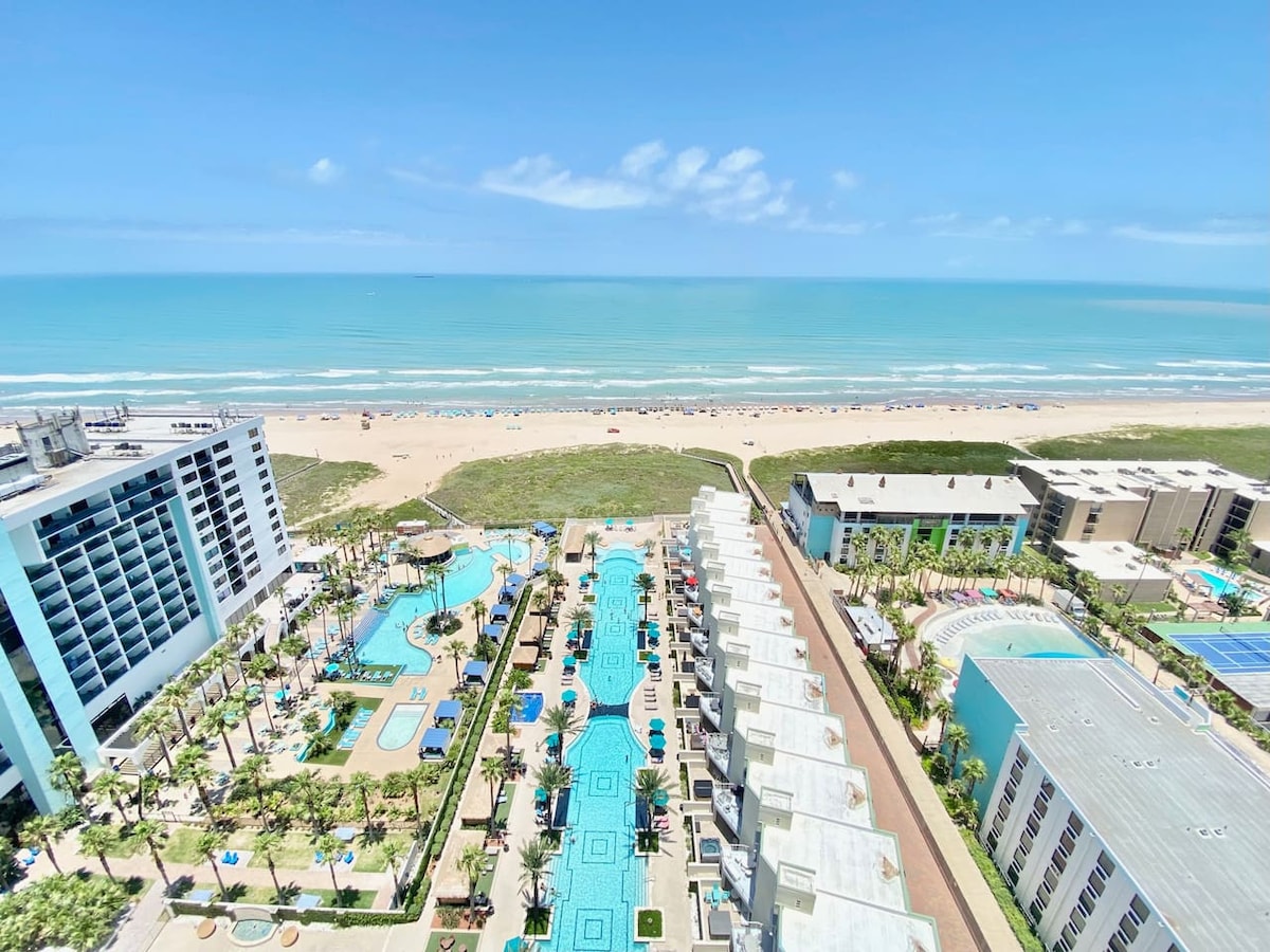 NOEN SKRITT FRA STRANDEN! LUKSURIØST innredet i en romslig, lys, moderne stil, vi gjorde hver detalj perfekt. Den vakreste soloppgangen du noensinne vil se venter på deg hver morgen. Hver kveld går en vakker sol ned over Laguna Madre! Overnattingen din blir like inspirerende. Vår leilighet i første etasje (ingen trapper!) er vakkert utstyrt, med romslige 10 fot høye tak, LED-belysning, nye møbler og apparater, smart-TV-er i alle rom, og ligger i enkel gangavstand til alt. KOS DEG!