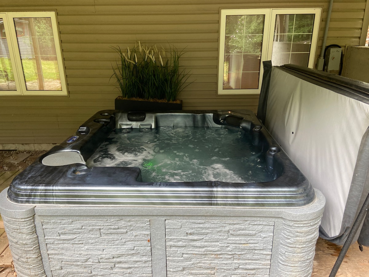 En fantastisk familie, Sauble Beach Getaway! Bare fem minutters gange fra stranden, denne tre-romsleiligheten har plass til seks personer pluss barn! Kjeller med utgang til boblebad, bålplass og privat hage. Masse spill og aktiviteter i og rundt hytta for å holde deg opptatt! Vedovn i kjelleren og gasspeis ovenpå. Main Street Sauble Beach, dagligvarebutikk og LCBO ligger bare ti minutters gange unna. Stier overfor hytta med akebakke, hundepark, samfunnshus, alt rett gjennom skogen!
