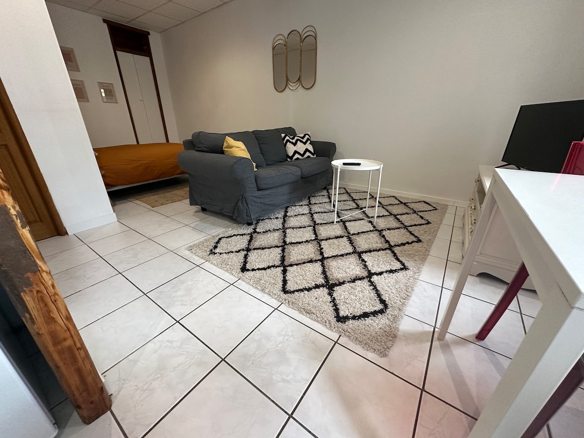 Velkommen til vårt sjarmerende studio som ligger i sentrum av Bruguières! Studioet vårt har en ideell beliggenhet noen få skritt fra restauranter og butikker, og tilbyr alle bekvemmelighetene du trenger for et hyggelig opphold. Utstyrt med en komfortabel seng, utstyrt kjøkken, dusjrom, separat toalett, lagringsplass, passer dette stedet perfekt for par eller alenereisende. Vi gleder oss til å være vertskap for deg og introdusere deg til den travle byen vår!