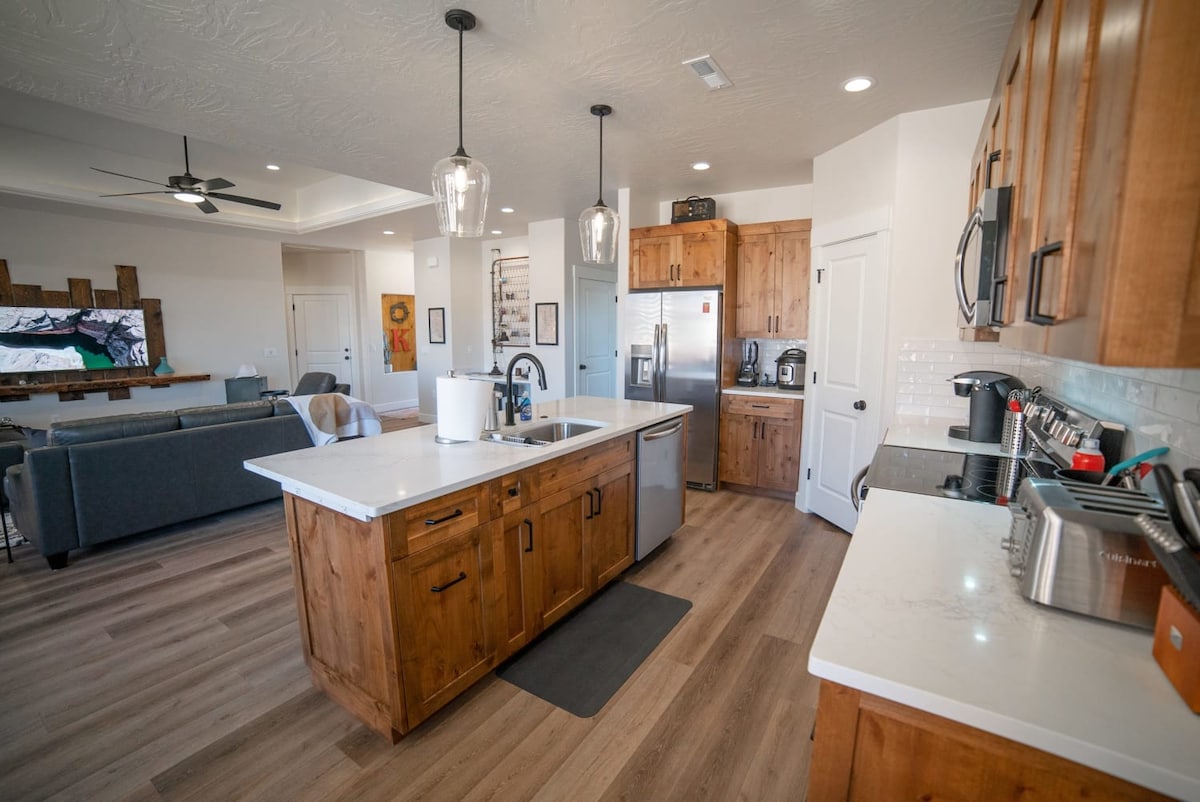 Velkommen til Kates sted, en nybygget Barndominium! Kom og nyt ferien din i vakre Southern Utah. 10 minutter utenfor Ceder City og bare en time unna Bryce Canyon, Zion's National Park, Brian Head Ski resort og Tuacahn Amphitheater. Vi ligger rett ved siden av en barneskole med en park og en gressplen. Se også Kate's Place #2 rett ved siden av for flere tilgjengeligheter, eller bestill begge for større grupper. https://www.airbnb.com/slink/KuZdbkxd