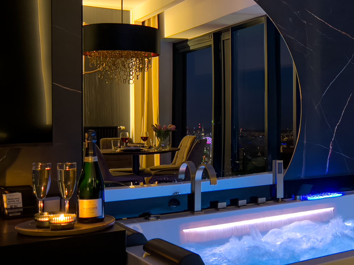 En luksuriøs, luftkondisjonert, romslig leilighet med BOBLEBAD, en velkomstflaske vin med bobler, Play Station 5 med en vakker utsikt mot Katowice skyline fra 14. etasje. 1 x kingsize-seng 180 x 200 cm 1x seng 160 x 200 cm Perfekt for kresne kunder som ser etter luksus og avslapning, noe som også vil hjelpe en lenestol med en massasjefunksjon. Bistro "MEET & EAT" i bygningen på nummer Zabrska 17 (åpent 7.30-16.00). Den serverer frokost og lunsj. Et utvalg fra en rik meny. Prisen for måltidet er ca. 29 PLN.